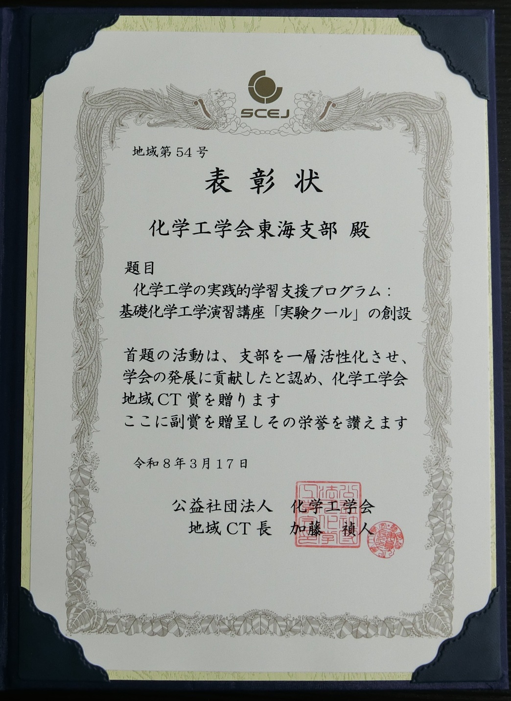 ・自画自賛のようで恐縮ですが実験クール(撹拌主体)が地域CT賞を受賞しました!