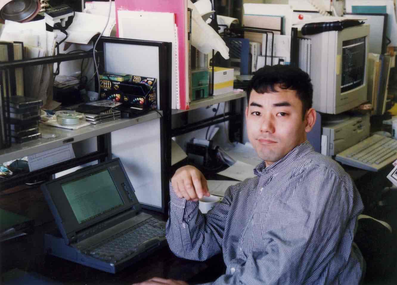 白黒ノートパソコンが時代を感じさせます。