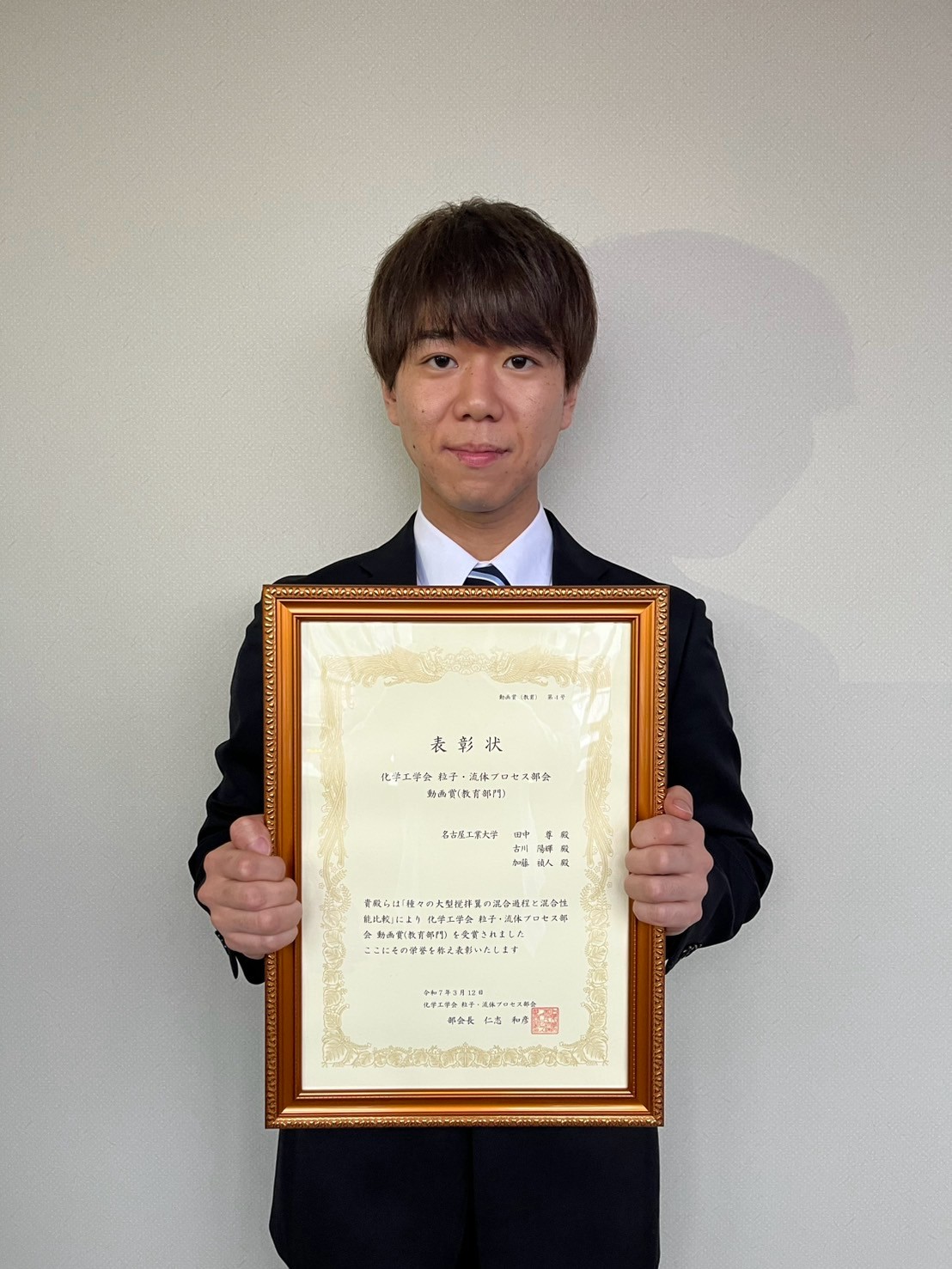・田中祐貴君が粒子・流体プロセス部会動画賞(教育部門)を受賞しました!