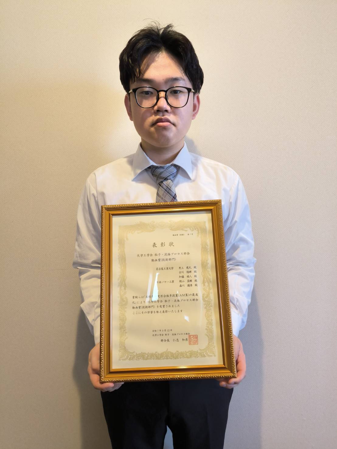 (受賞者は森君といって化工研ではなく物理工学科の4年生です。)
