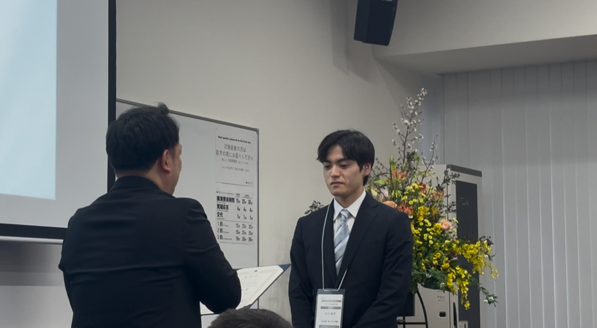 ・小川稜平君が91年会優秀学生賞を受賞しました!