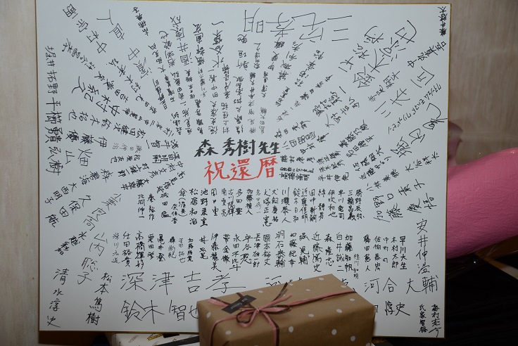 岩田が準備した見事な色紙です。しかし、なんで現役の三宅、深津、智也の名前が一番でかいんだ?