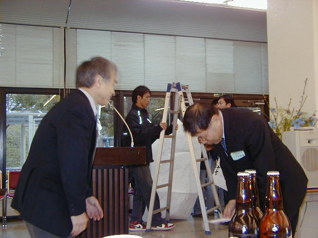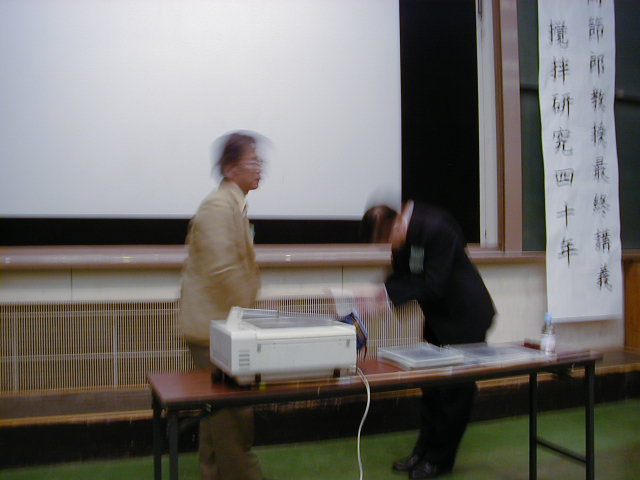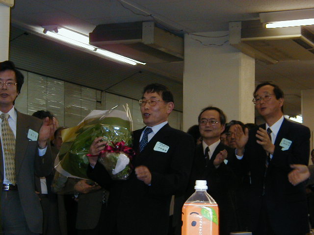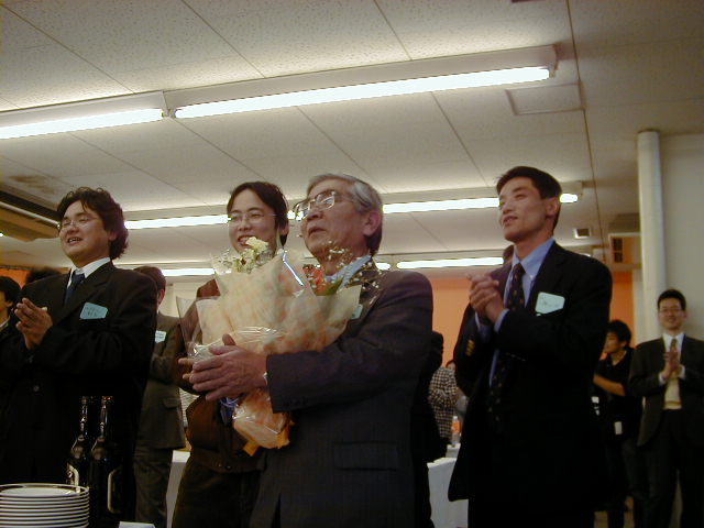 東京理科大望月先生の花束贈呈(佐竹化学機械工業(株)塩原さん)