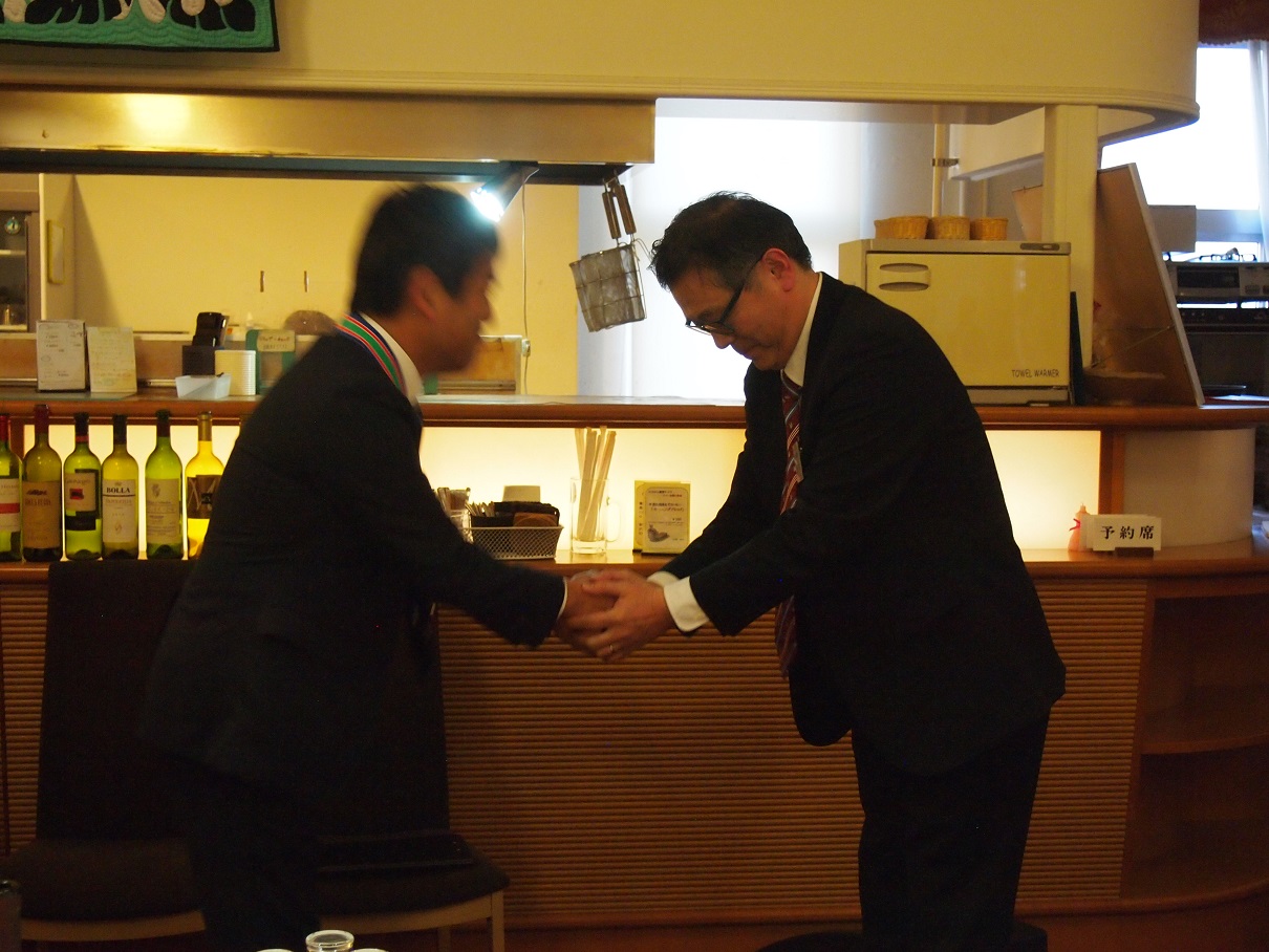 岡田委員長から築城委員長への交替の儀式が厳かに行われました。