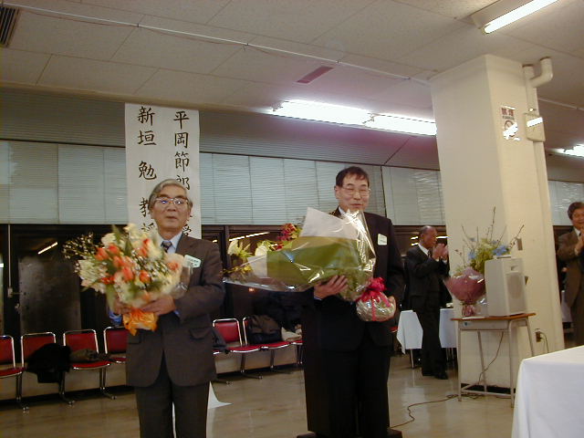 東京理科大望月先生の花束贈呈(佐竹化学機械工業(株)塩原さん)