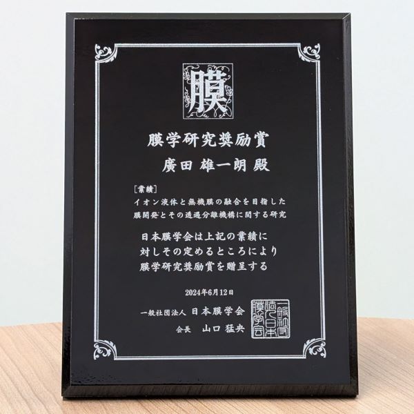 廣田准教授が日本膜学会の2024年度膜学研究奨励賞を受賞しました。(