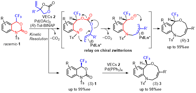 - Synthesis of Both Mirror Images of 9‐Membered CF3‐Heterocycles using a Single Antipode of Chiral Ligand under Pd‐catalyzed Decarboxylative Ring‐expansion with Kinetic Resolution