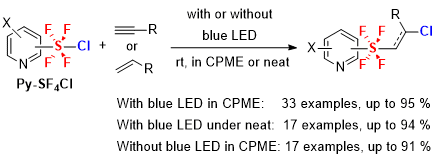 - Pyridine tetrafluoro-λ6-sulfanyl chlorides: Spontaneous addition to alkynes and alkenes in the presence or absence of photo-irradiation