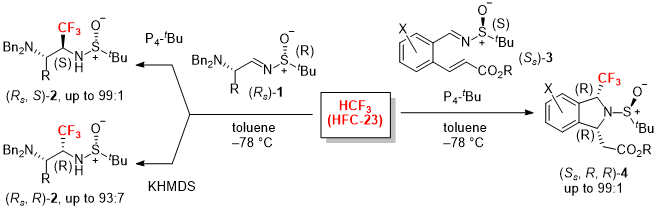 - Diastereoselective Synthesis of Enantioenriched Trifluoromethylated Ethylenediamines and Isoindolines Containing Two Stereogenic Carbon Centers by Nucleophilic Trifluoromethylation Using HFC-23