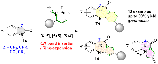 - Modular Synthesis of Medium-Sized Fluorinated and Nonfluorinated Heterocyclic Lactones by Sequential CN-Bond-Cleaving Ring Expansion under Pd Catalysis