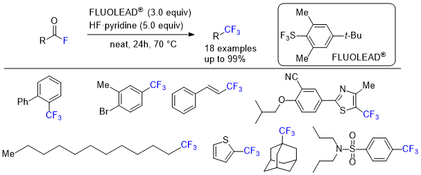 - Deoxyfluorination of acyl fluorides to trifluoromethyl compounds by FLUOLEADR/Olah’s reagent under solvent-free conditions
