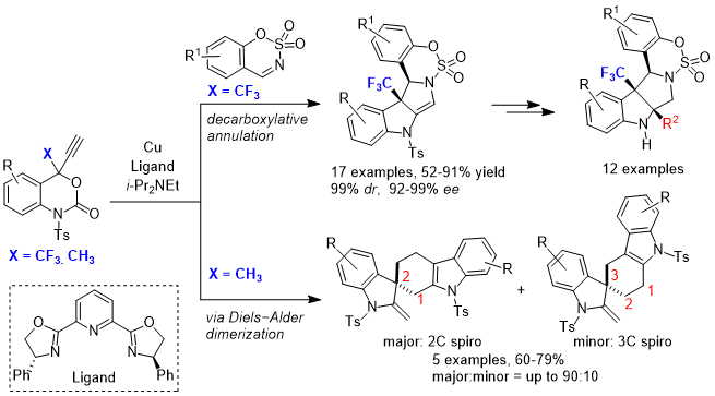 - Transition‐Metal Free Catalytic Synthesis of Trifluoromethyl Indolines by [4+1] Cycloaddition of Trifluoromethyl Benzoxazinones with Sulfur Ylides