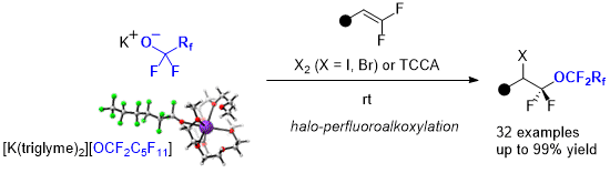 - Halo-perfluoroalkoxylation of gem-difluoroalkenes with short-lived alkali metal perfluoroalkoxides in triglyme